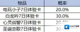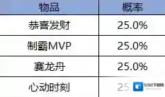 B 超值皮肤秘宝中,必得红蓝对决*1日,可额外获得的物品产出概率公布如下: