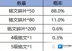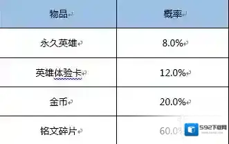 G 局内表现礼包中,必得400铭文碎片,可额外获得的物品产出概率公布如下: