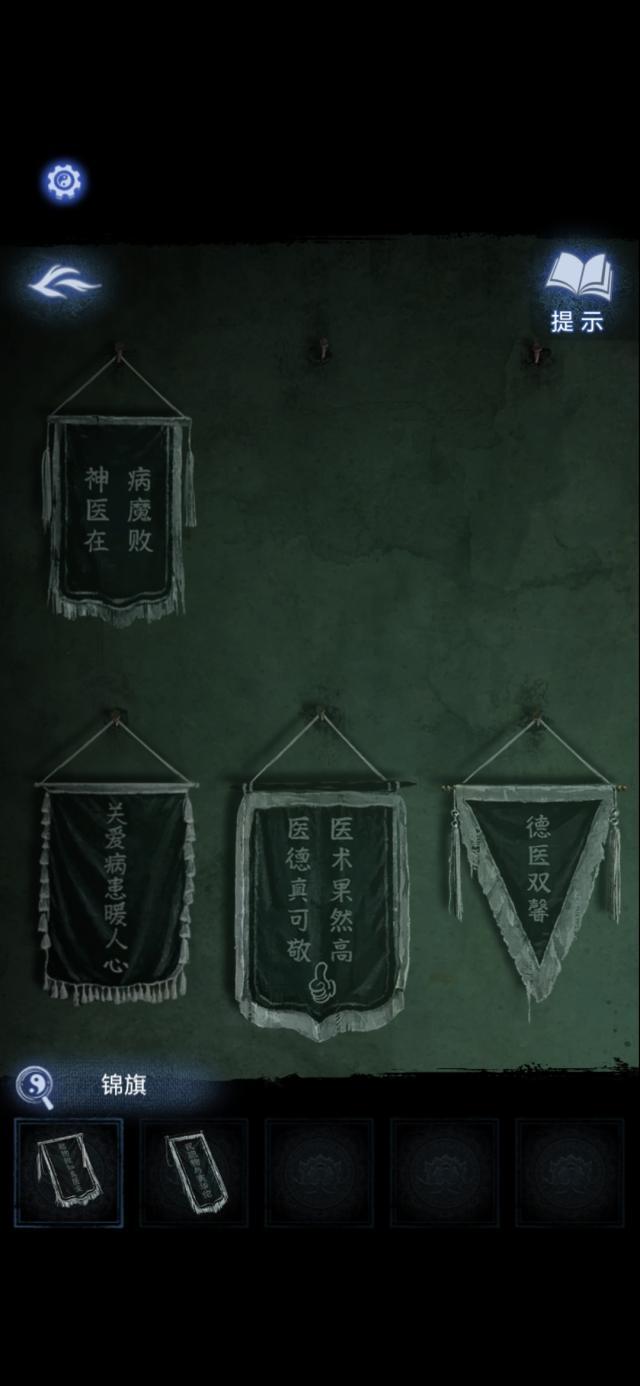进入办公室,点击墙面,将锦旗挂在墙上,根据台灯下的资料排列锦旗顺序,打开停尸柜,获得香