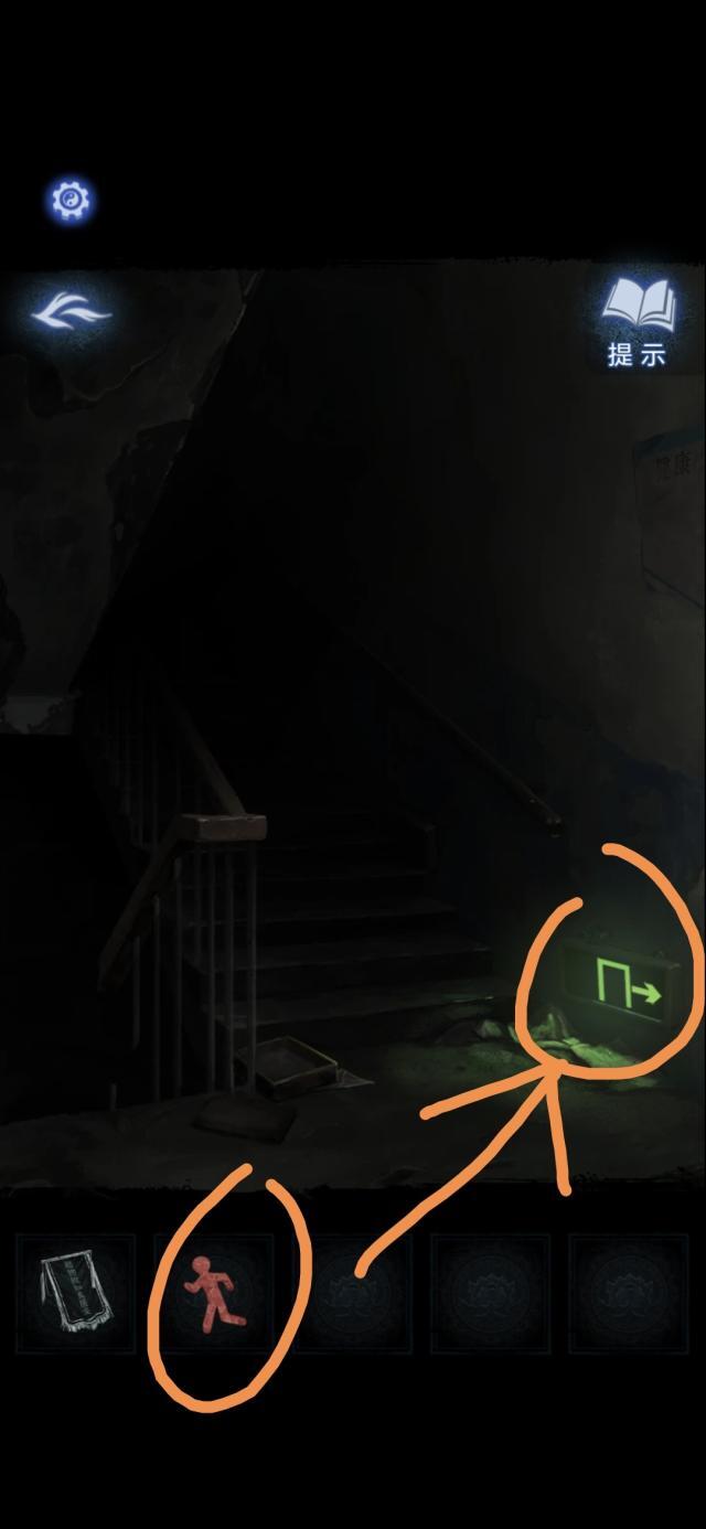 把剪纸小人放在楼梯间的安全通道标志上, 楼梯间亮起