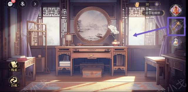 11.点击柜子上的密码锁,根据[书房]床榻上的卷轴上的线索,调整密码锁:福报和贵安