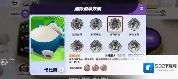 7、推荐徽章:替身玩偶,可以使宝可梦在顽皮雷弹预告落点中留下玩偶替身,被敌方牵制,距离落点过远时,可以快速回到落点位置。