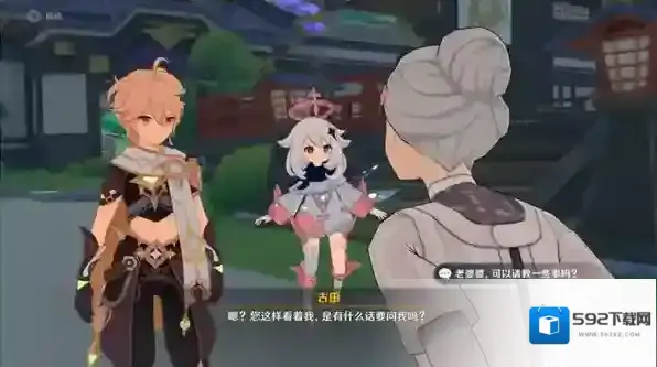 与院中古田对话,得知老婆婆只记得大小姐与旅行者的密切关系