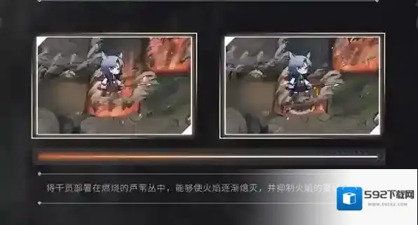 将干员部署在燃烧的芦苇丛中,能够使火焰逐渐熄灭,并抑制火焰的蔓延。