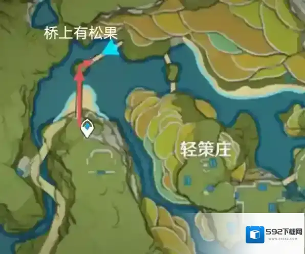 松果的位置在轻策庄有很多,只要去下图这个位置就可以收集够了! 如图↓