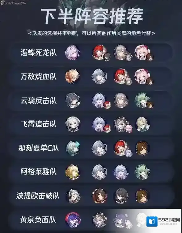 推荐使用瑕蝶(量子)、万敌(虚数)、赛飞儿(量子)、缇宝(量子)、那刻夏(上弱点)、乱破(虚数)、翡翠(量子)、砂金(虚数)等角色配队