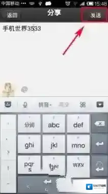 2、然后在点击图片右下方的“分享”按键,就会显示出分享界面,在按“新浪微博”,进入编辑页面。(如下图所示)