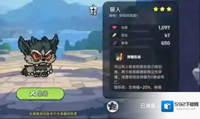狼人可以作为PVP角色,同时狼人变为狼形态可以作为跑图角色使用,独立生命值的特点,可以给狼人更多的容错更多的生存空间。