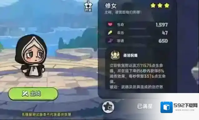 修女作为同厨娘一样的辅助角色,有着瞬间回复生命的能力。能够在自身或者队友缺少生命时回复大量生命。