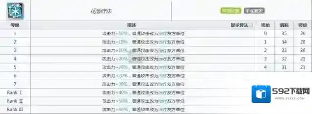 园丁:自身在场时,增加所有辅助干员的9%(+2%),即11%的攻击力(精英二满潜能时数据,括号内为潜能加成)。