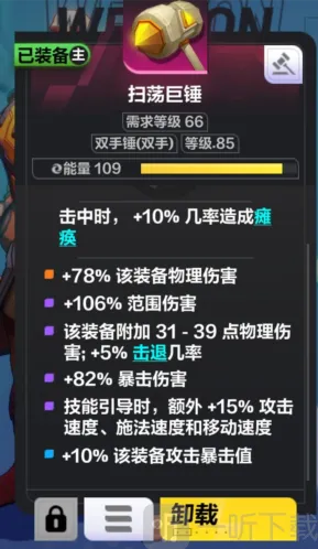 剩下的防具都用紫装补血抗即可。武器选择双手锤: