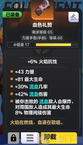 流血爆炸:通过便宜的暗金手套 血色礼赞,击败流血敌人时产生爆炸,高效清图。由于暗影术士的天赋点,击中时必定会造成流血,因此覆盖率极高