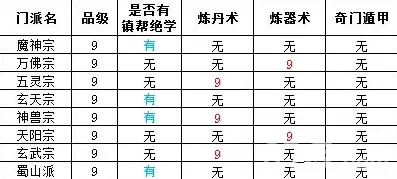 在表中,显示“无”则代表该门派没有炼丹师长老,无法学习到炼丹术