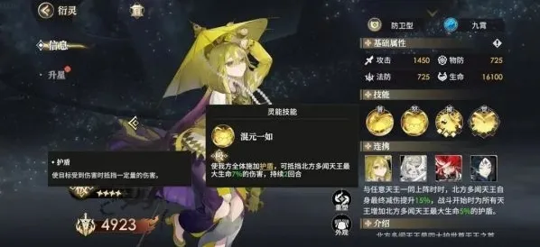牛魔王的连携能增加所有防卫型衍灵的灵技减伤,黄狮精的连携能增加全体最终减伤,多闻天王的护盾也能增加阵容的整体坦度,他们三人构成了本阵容坚实的前排。