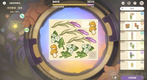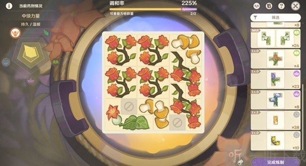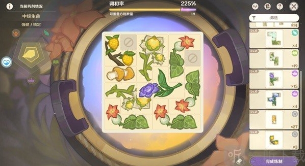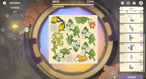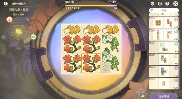 1.格子摆的越满,药剂等级和品级大概率就越高!同一种药材数量越多,品级越高!