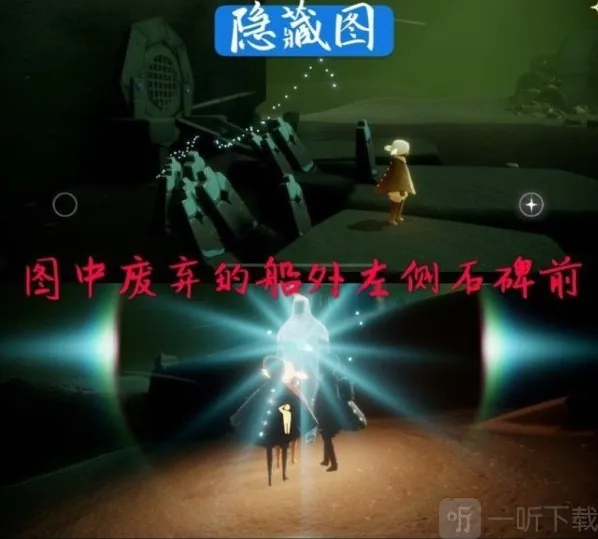 4、第四个敬礼先祖在隐藏图——废弃船的外面的石碑前面。