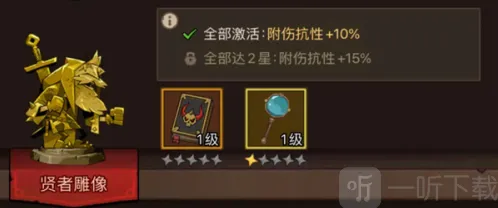 遗物升星可提升属性加成与被动技能强度