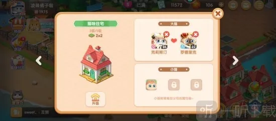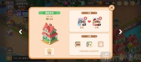 注意:品质高低省出来的小猫加成是不一样的,两个不同的小猫住在一起一晚上基本上是可以生出来一只小猫咪的,小猫咪无法成长,只能用于加成,我们也可以选择删除猫咪或者更换配对的猫咪;