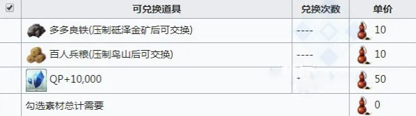 本次活动中的活动材料多多良铁,黑火药和百人兵粮都是可以互相兑换,因为一些活动关卡需要我们拥有一定数量的这些材料,所以各位御主们可以根据自己的需求来互相兑换达成平衡哦!