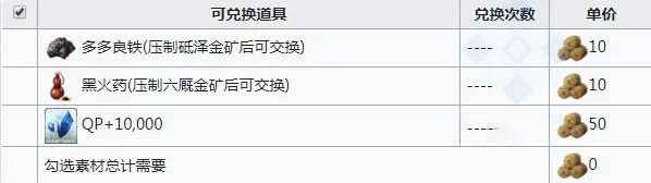活动材料铁火药兵粮可兑换列表
