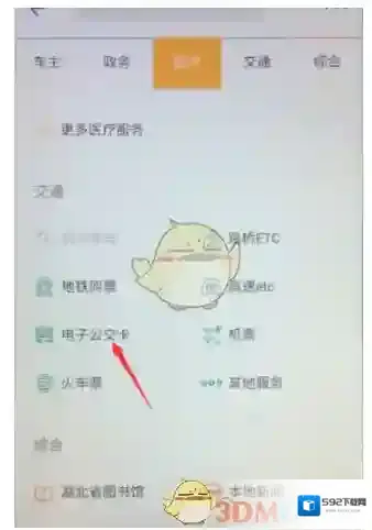 3、支付宝就会自动定位到你所在的城市了,如果你的城市开通了电子公交卡功能,那么在这个页面就会出现电子公交卡,我们点击选择它,如图,
