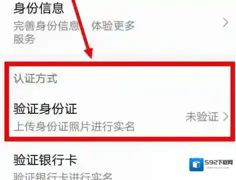 第五步,进入到实名认证界面中,点击“验证身份证”上传我们身份证的正反面即可实名认证成功。