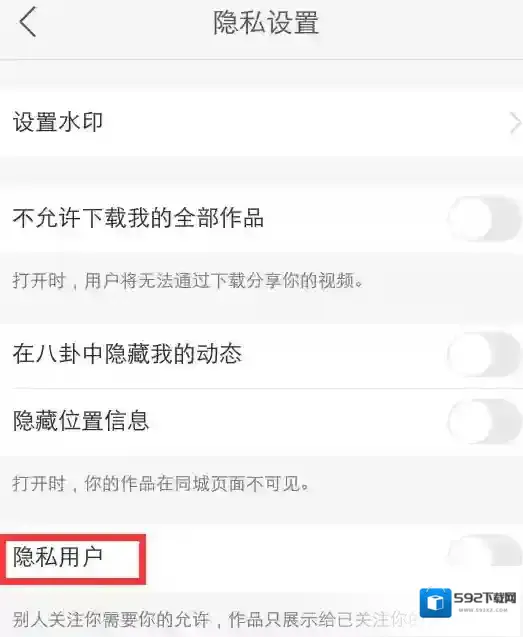 设置隐私用户之后,你的视频作品之对粉丝展示。