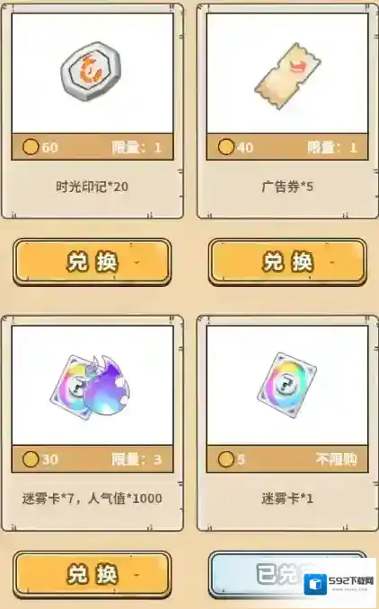人气值,可以用来抽低级卡,也有解锁封印物格子等用处氪晶,用来升级卡牌广告券,跳过一次看广告,直接获得奖励