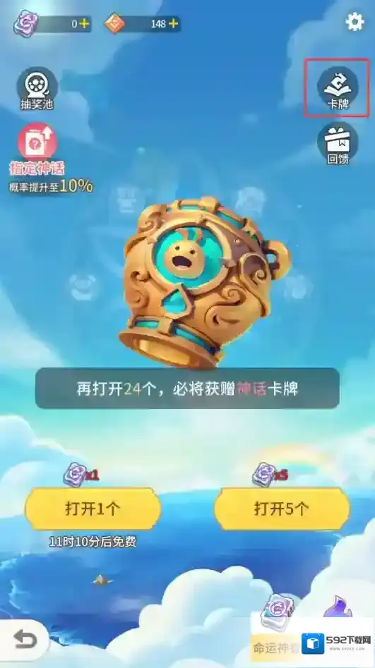 命运神石在活动-命运神石里抽卡,和投喂一起解锁。6个神石抽一次,会抽到一张史诗(金色)或神话(红色)卡牌,有神话保底。