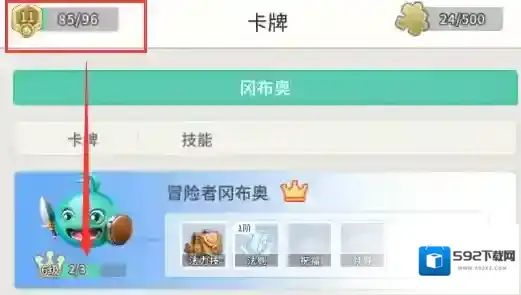 点右上角的卡牌,这里会进入卡牌培养,世界之子冈布奥升级就是在这里。