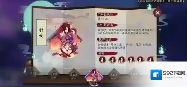 3.彼岸花:御魂针女。这个阵容的第三个核心输出,主要是用来补伤害,茨木跟鬼切由于加了速度,伤害方面可能不能全部秒掉对面输出(有的输出带地藏),所以彼岸花就是最好的收割式神。