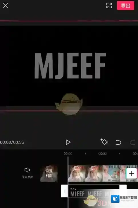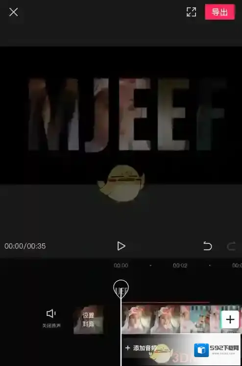 2、添加文字,然后设置它的大小即可。然后“导出”即可