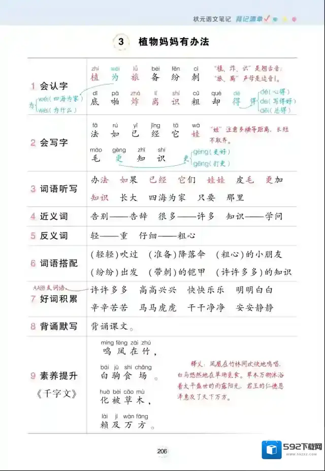 状元语文笔记(背记清单)3年级上册 pdf格式 百度云网盘