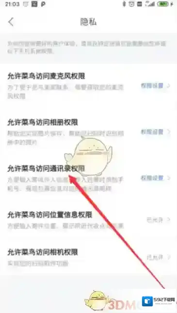 5、允许菜鸟访问通讯录权限即可。