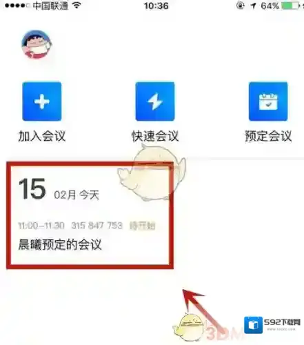 5、成功操作后,即可发现自己预定的会议已经显示在内。