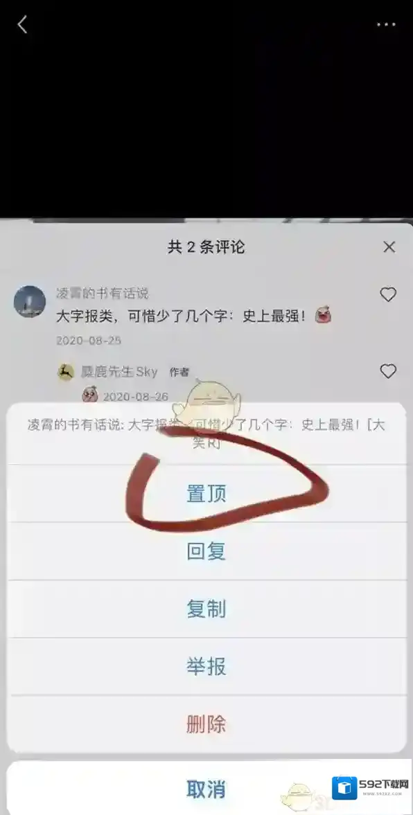 5、视频号认证通过后,点击自己的评论后,点击置顶评论即可。