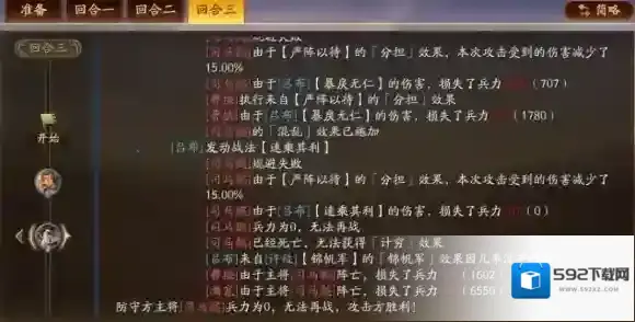 看结果,SP袁绍杀敌4186、吕布杀敌15344、许攸4060,对方输出全部为零,还治疗恢复了3588。
