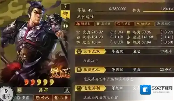 吕布:速乘其利+暴力无仁;胜而益强+胜战+执锐,输出是主旋律,破防就要带上最狠的那种