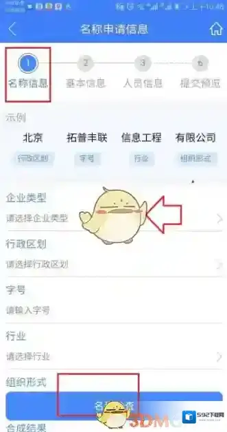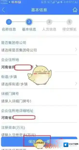 4、进行注册公司企业基本信息的审核,输入准确需要输入的企业信息,点击输入进去,然后点击下一步。