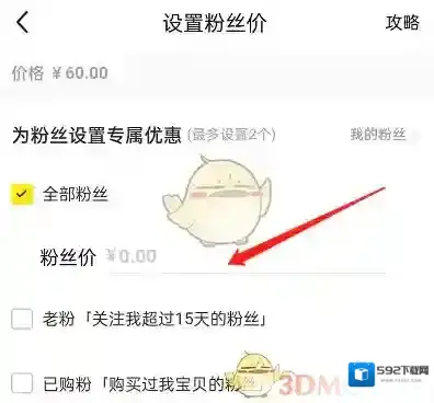 3、点击价格,再点击设置粉丝价。