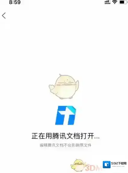 4、随后会显示“正在用腾讯文档打开”需要等待一会。