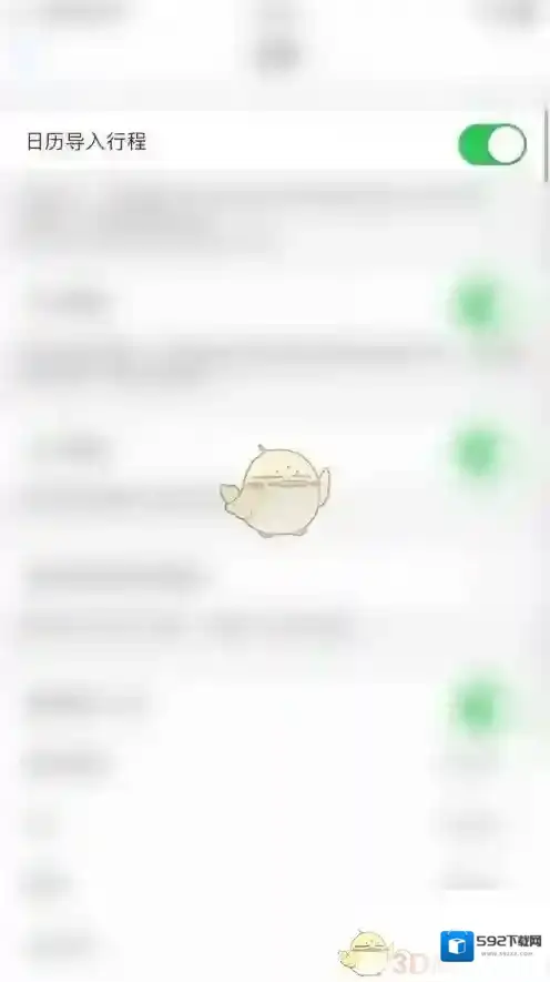 3、接着在设置界面点击“日历导入行程”后面的圆点;