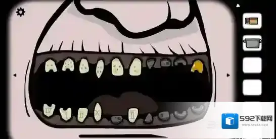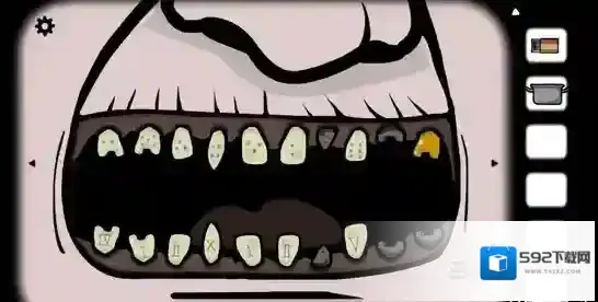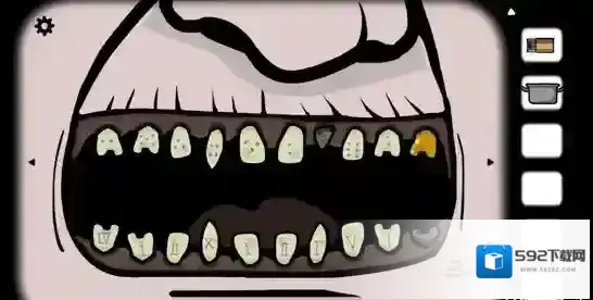 是一个老奶奶,还算慈祥吧。点击她的嘴,她有一口牙。每颗牙齿都有数字,上面是点数,下面是罗马数字。规则呢就是每次点击一颗上面的牙,然后点击下面数字和相等的牙。下面答案不唯一[想一想]