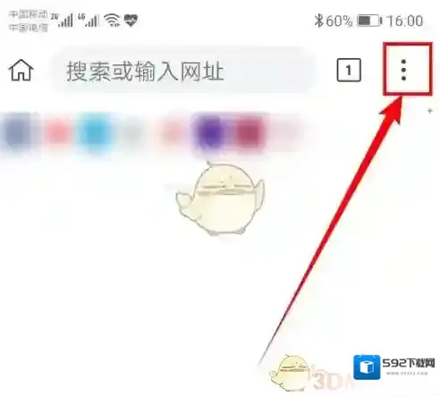 2、我们准备好插件之后打开 Kiwi Browser,进入主界面之后点击右上方的如图示的图标。