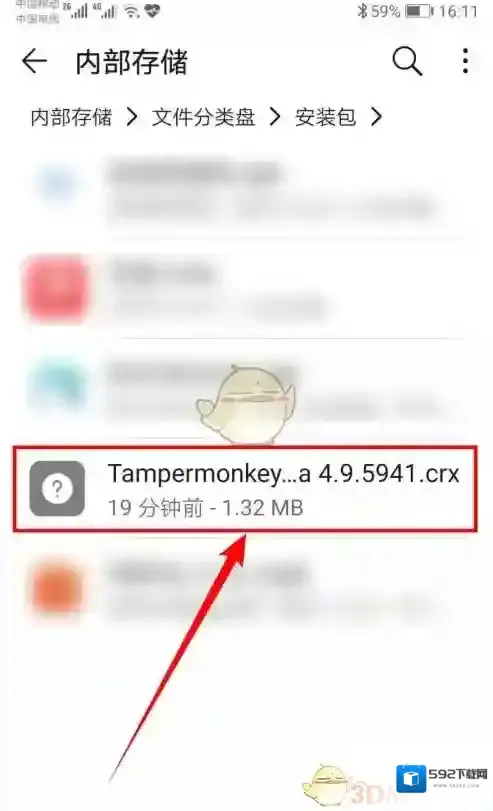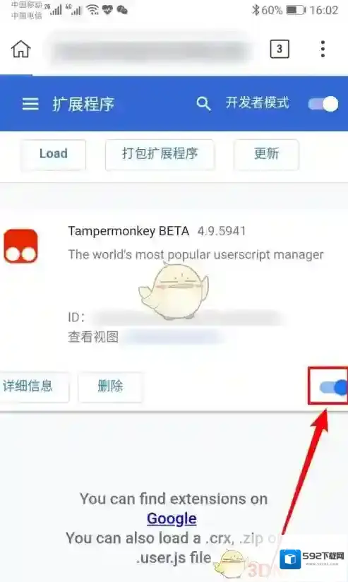 8、然后我们找到并点击Tampermonkey 扩展插件文件。点击之后即可让其安装了,我们将下方开关打开即可开始使用了。