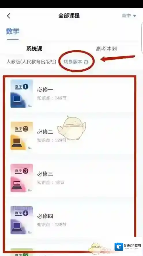 4、最后此时课程切换完毕,在此页面还可以点击“切换版本”选择教材版本,如图: