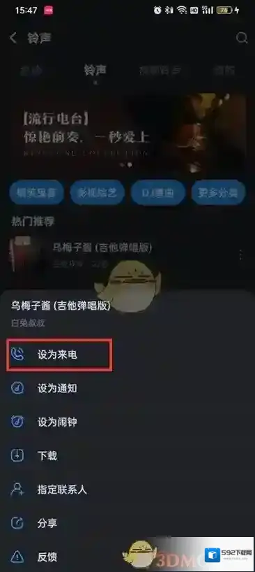 5、最后点击页面下方弹出的选项中的“设置为来电”即可。