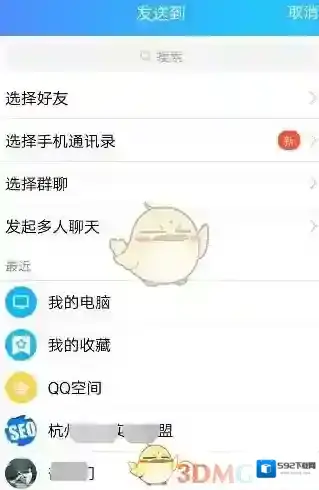 5、进入QQ页面,选择好友或者群进行分享。