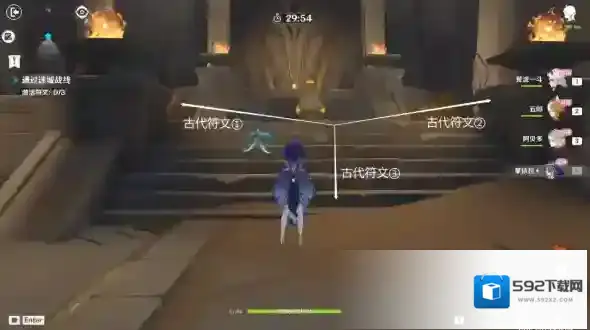 由于推荐队伍配置的输出足够,可直接前往3处古代符文位置