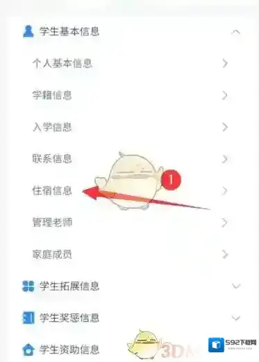 5、在住宿信息界面中显示宿舍的所在的校区,单元,门牌号信息。